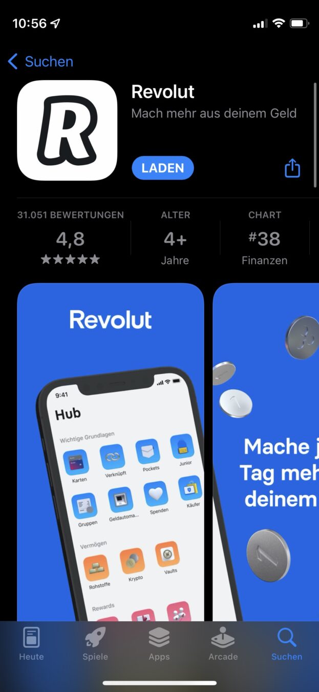 Um an deine Kreditkarte zu kommen und deine eigenen Revolut-Erfahrungen sammeln zu können, musst du kein normales Girokonto über ein kompliziertes Anmeldeverfahren eröffnen. Vielmehr lädst du dir in einem ersten Schritt die Revolut-App auf dein Smartphone herunter. Die gesamte Banking-Aktivität läuft später über diese App.