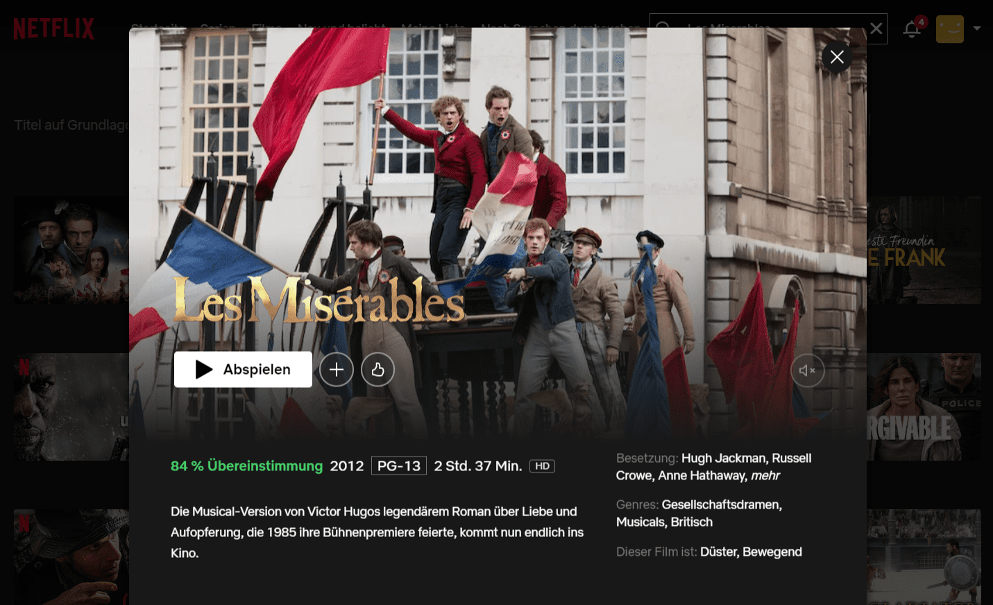 Möchtest du den Film zur Musical-Version Les Misérables auf Netflix in Deutschland anschauen, wirst du zunächst ernüchtert. In Deutschland ist die Filmversion mit hochkarätigen Schauspielern wie Hugh Jackman oder Helena Bonham Carter nicht verfügbar.