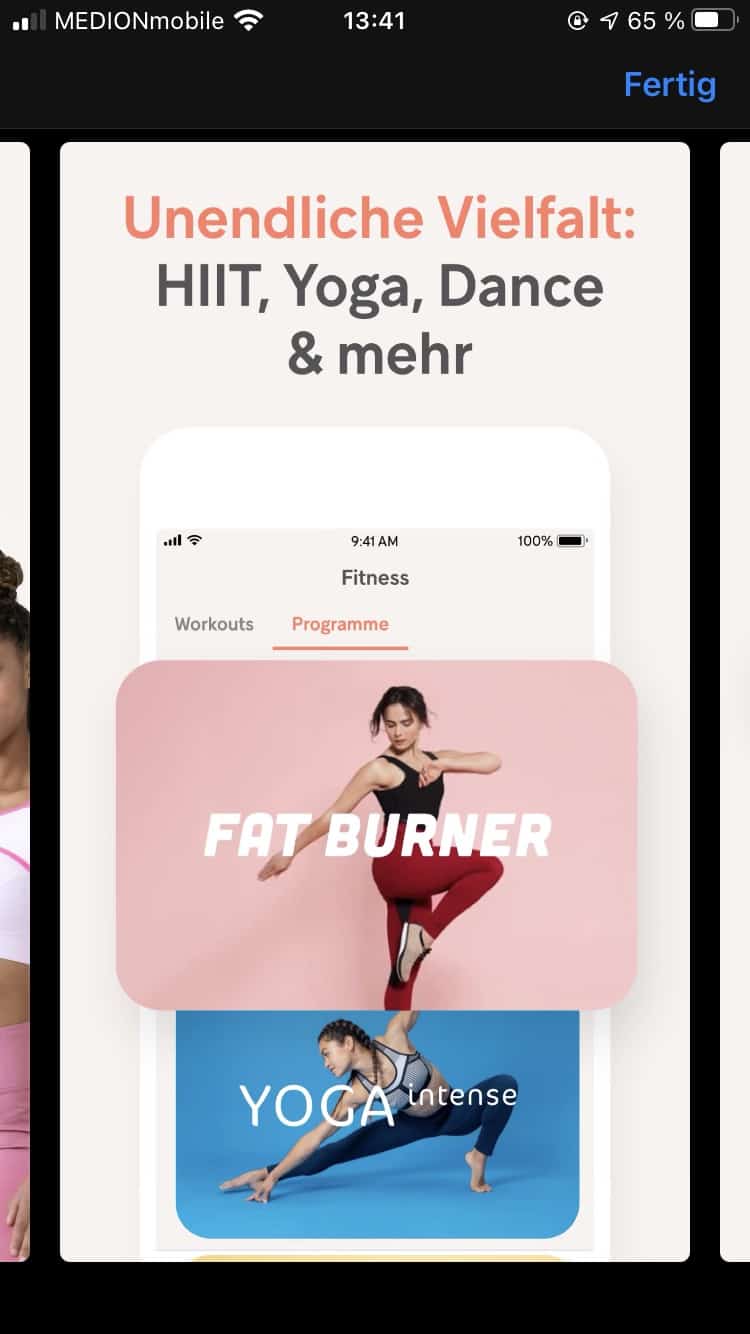 - Mehr als 1.000 Workouts, 30 geführte Programme und Meditationen