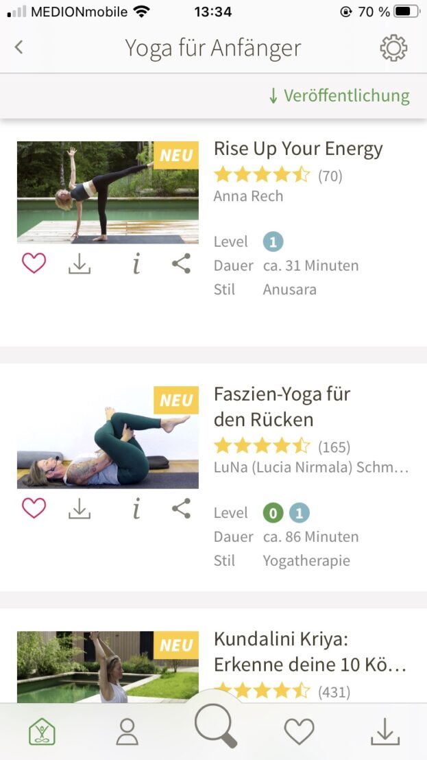 - Abwechslung beim Yoga-Training dank verschiedener Programme